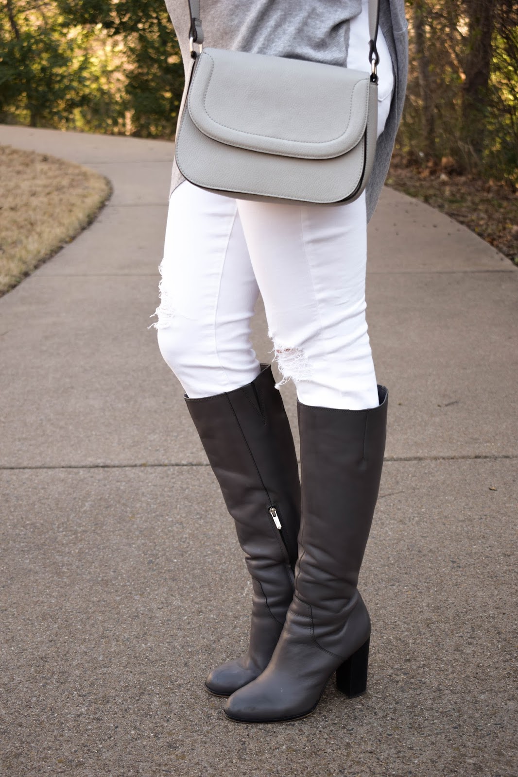 Anyways, on to this grey and white look that I could wear on repeat every day. This top I actually discovered while watching a blogger’s tutorial on YouTube and I just thought it looked so comfy. So, whenever she mentioned where she got her top I jumped right to ordering it. And let me tell you it is the BEST top ever. You can wear it dressed up or just around the house and its amazing.